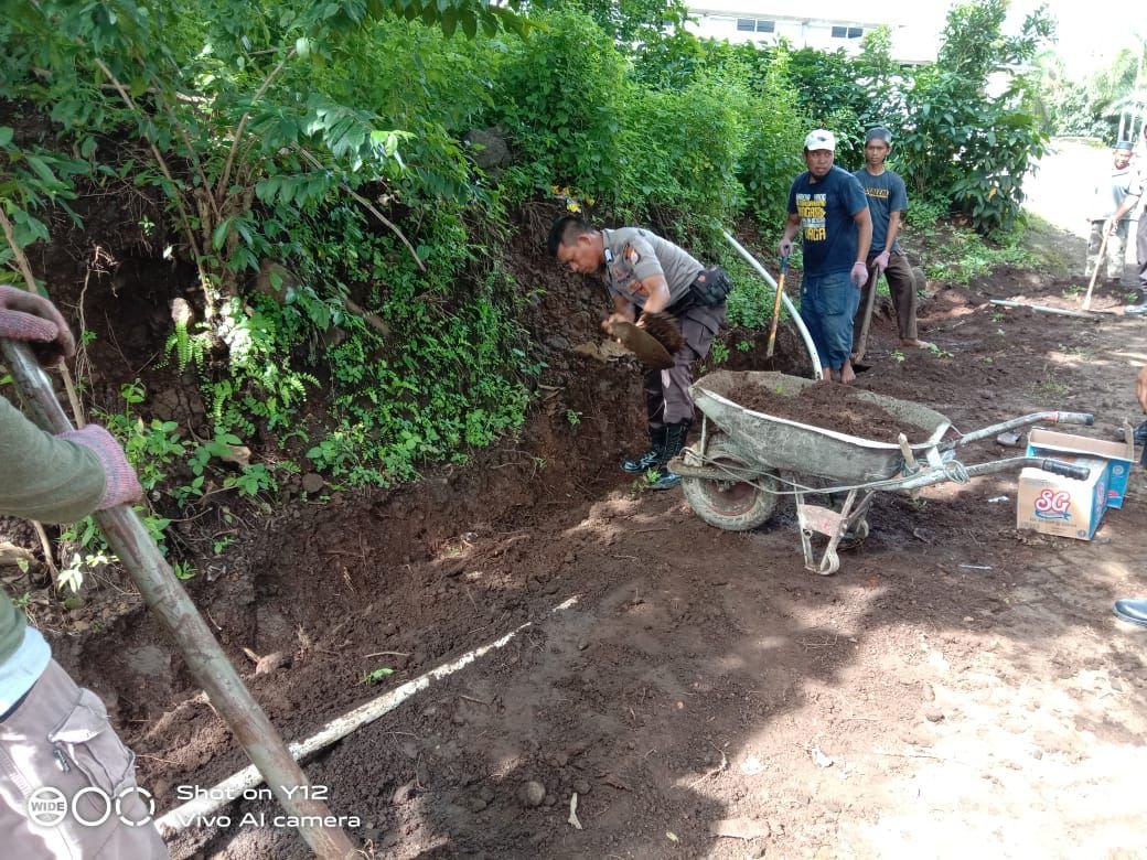 Kegiatan kerja bakti di Pesantren Darul Ulum, Desa Nirannuang, Kecamatan Bontomarannu, Jumat (28/2/2020), melibatkan jajaran Polres Gowa.
