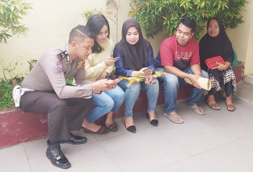 "Kami temui warga saat sedang santai duduk didepan ruangan SKCK dan kami berikan himbauan tentang jangan mudah percaya hoaks serta bijak menggunakan media sosial," kata Briptu Hamzah.