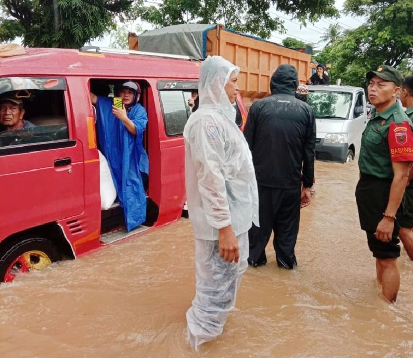 "Meskipun banjir hampir selutut, kami harus tetap melaksanakan pengaturan di lokasi banjir ini. Kami juga imbau kendaraan yang akan melintas genangan air banjir tersebut agar lebih hati-hati," ungkap Bripka Baharuddin.
