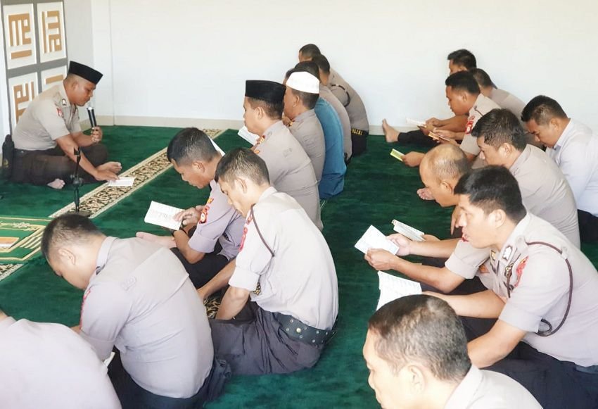 Binrohtal diawali dengan Shalat Dhuha kemudian dilanjutkan pembacaan surah Yasin yang dipimpin oleh Brigpol Muh Yusuf dirangkaikan dzikir dan doa bersama.