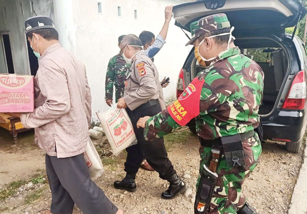 Kapolsek Bajeng Iptu Sunardi, SH, MH bersama Tripika Kecamatan Bajeng Kabupaten Gowa memberikan bantuan sembako dari Pemerintah Kabupaten Gowa untuk warga yang berstatus Orang Dalam Pemantauan (ODP) virus Corona (Covid-19), Rabu (01/04/2020).