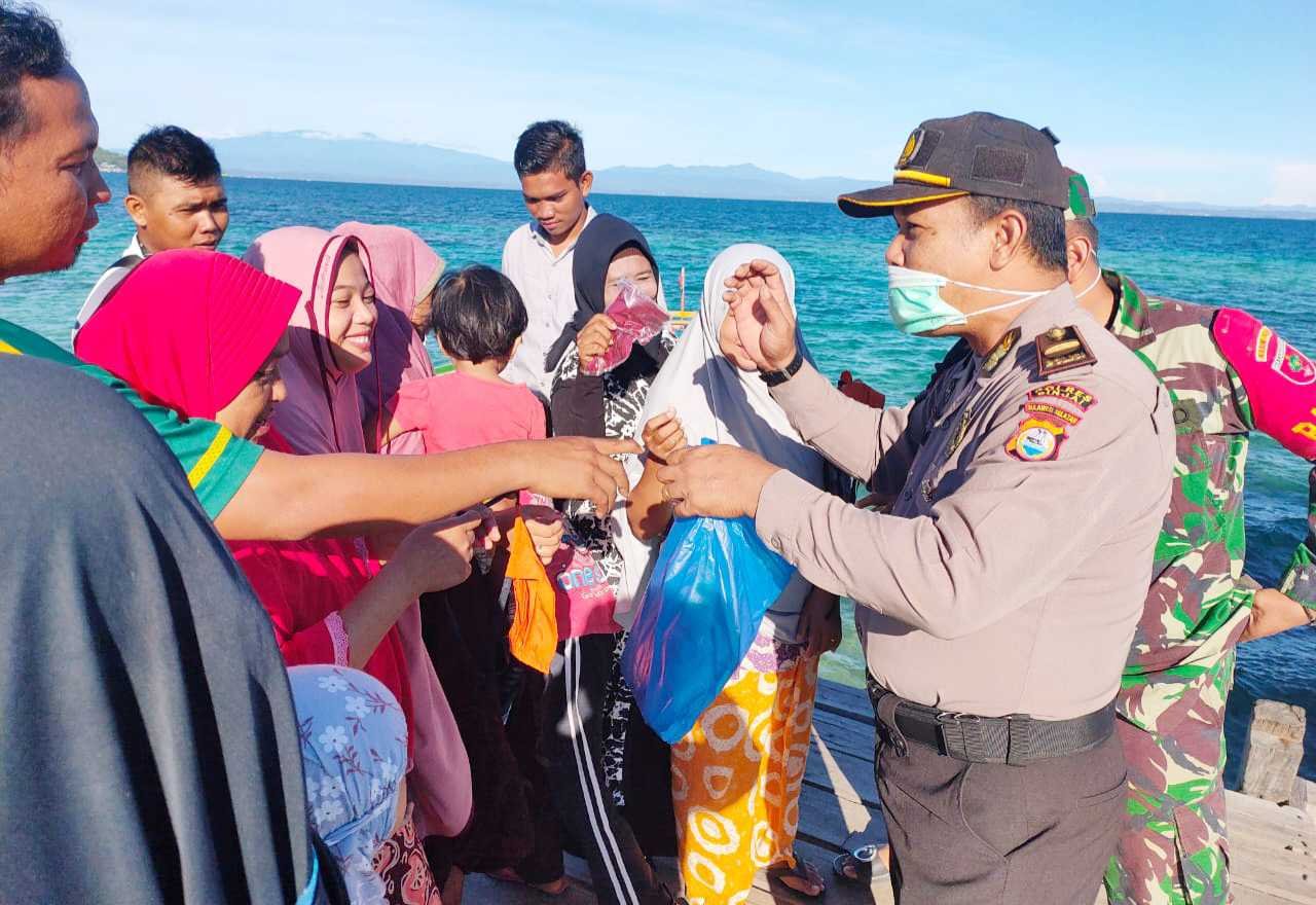 Kapolsek Pulau Sembilan, Ipda Sasmito, SH tak pernah lupa akan warga di wilayah hukumnya, seperti saat ini ditengah-tengah keprihatinan masyarakat terhadap wabah Covid-19 iapun membagikan Masker kepada penumpang Kapal Fajar dan Kapal Zahra, Kamis (09/04/2020).