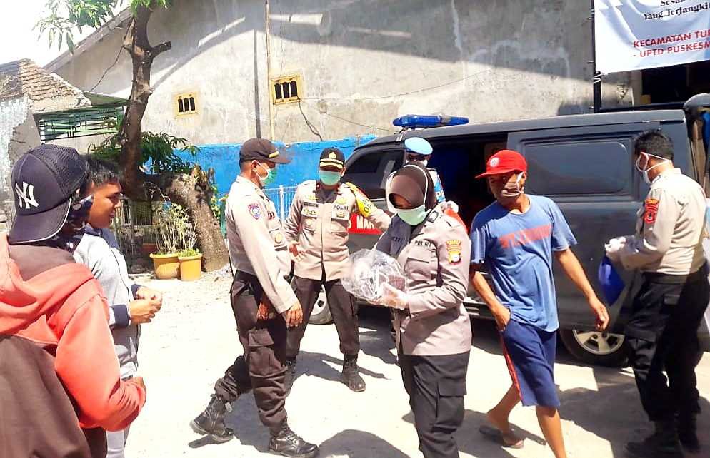 Personil Satuan Binmas bersama Bag Ops Polres Maros melaksanakan kegiatan sosial dengan membagikan sembako dan masker kepada warga masyarakat kurang mampu di wilayah Kabupaten Maros, yang berlangsung Jumat (17/04/2020) siang sekitar pukul 13.00 Wita di depan Puskesmas Turikale.