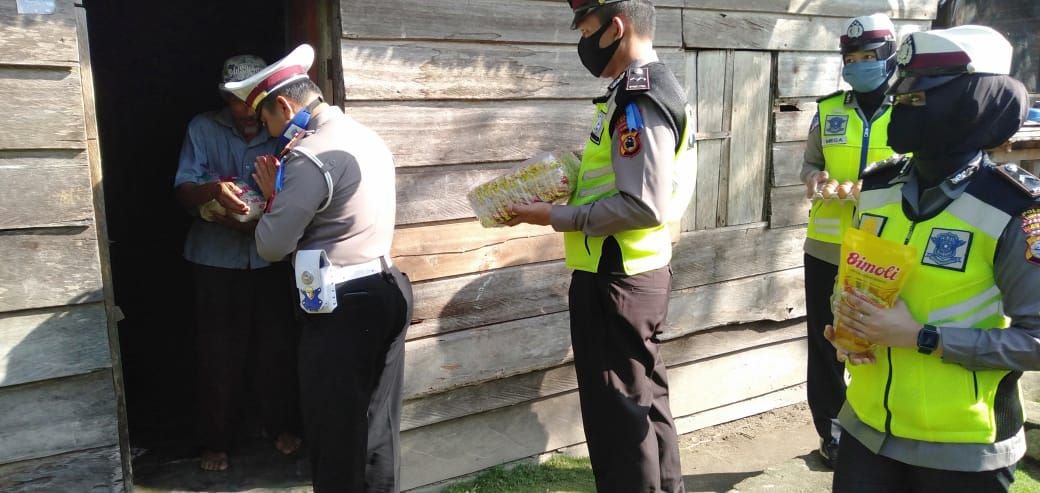 “Sebelumnya kami data warga kurang mampu, baik itu tukang ojek, petani. Kita sudah koordinasi dengan Bhabinkamtibmasnya. Sementara ini kita bagikan ke 10 KK yang dinilai kurang mampu secara ekonomi untuk meringankan beban hidup mereka,” kata Kasatlantas.