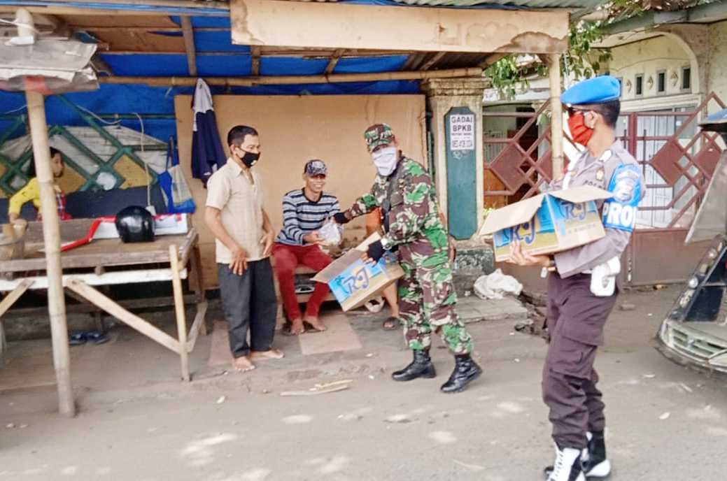 Sinergitas TNI-Polri di Kabupaten Gowa kembali terlihat di hari ketiga saat membagikan makanan siap saji yang telah disiapkan dari dapur umum Polres Gowa bersama Kodim 1409 Gowa, Sabtu (18/04/2020).