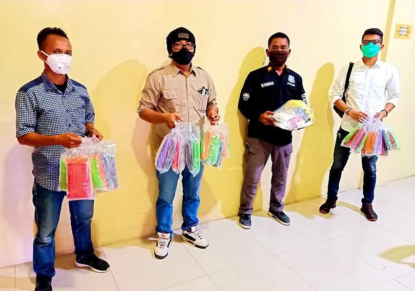 buat teman-teman jurnalis lainnya, juga kepada warga masyarakat dan para petugas yang ada di lima Pos Covid-19 Kabupaten Gowa. Mereka ini harus safety selama beraktifitas apalagi disaat melakukan peliputan di lapangan," kata owner UMKM GoWa-Mo Nuk's Tailor dan CV Auto Jamixs, Nuki saat ditemui disela kunjungannya.