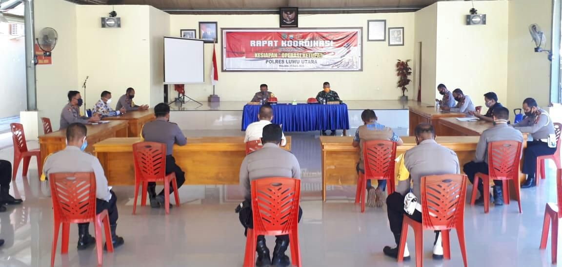 Jajaran Polres Luwu Utara (Lutra) Sulawesi Selatan (Sulsel) memfasilitasi Rapat Koordinasi (Rakor) persiapan pelaksanaan pengamanan Operasi Ketupat 2020.