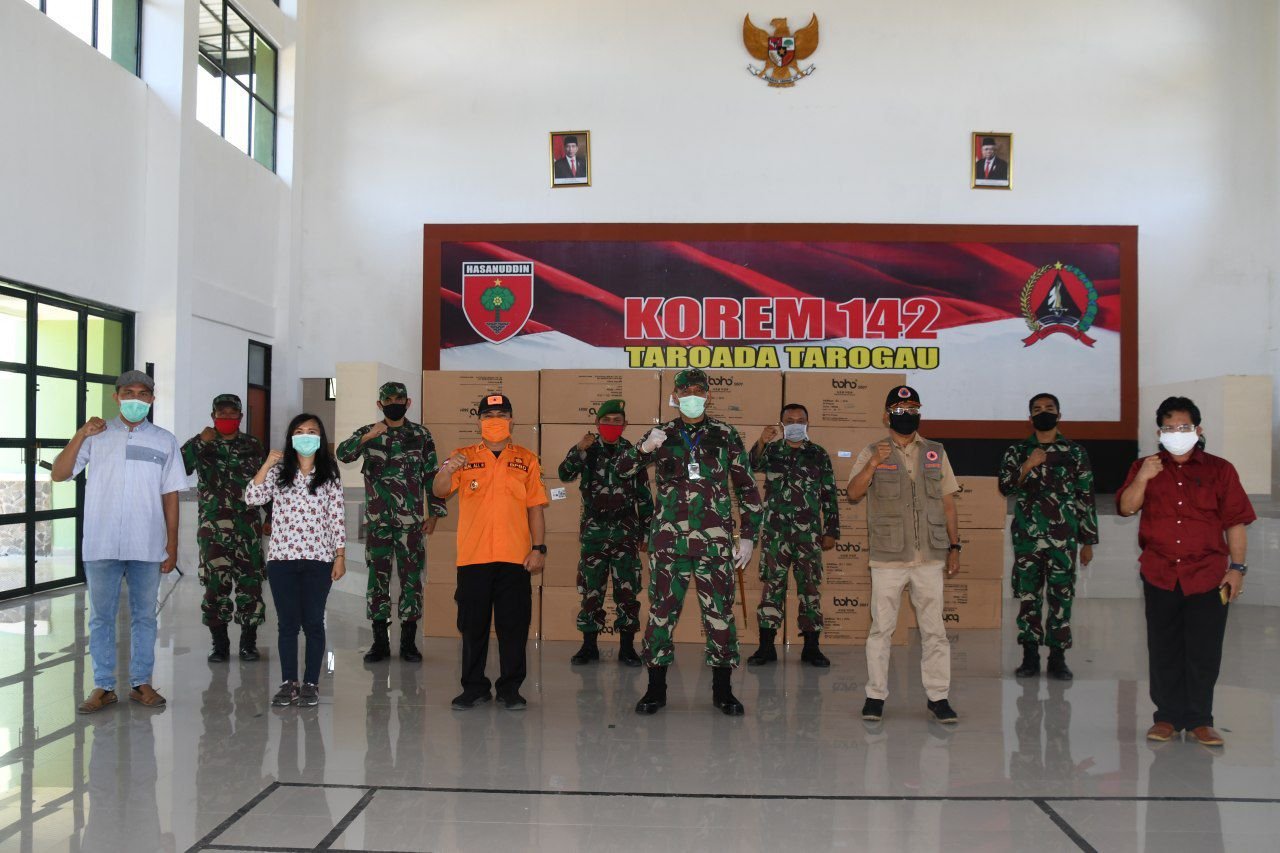Pendistribusian Alat Pelindung Diri (APD) berjumlah 4.250 each atau 85 koli diserahkan Danrem 142/Tatag Kolonel Czi Firman Dahlan, S.I.P di Aula Andi Depu Korem 142/Tatag Jl. Abd. Malik Pattana Endeng Mamuju, Provinsi Sulawesi Barat (Sulbar), Sabtu (2/5/2020), dihadiri Kasdim 1418/Mamuju Letkol Inf. Agussalim,SH dan seluruh Perwira Staf Korem 142/Tatag.