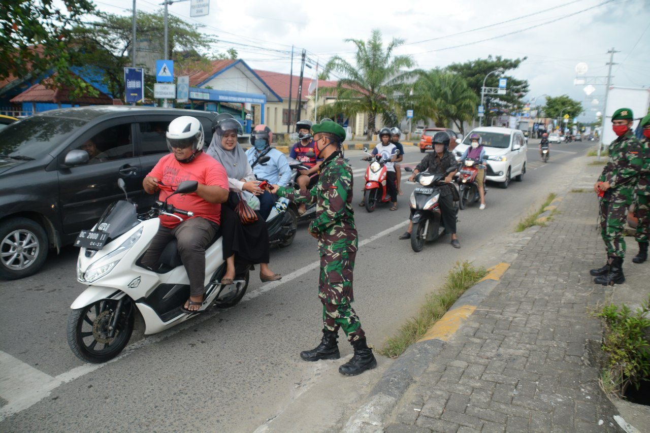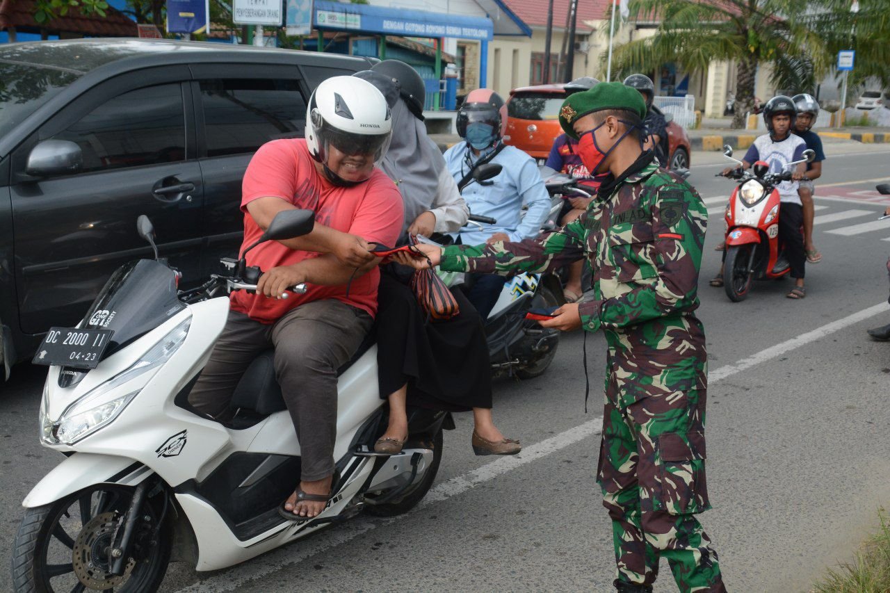 Melihat kondisi ini, Selasa (5/5/2020), beberapa orang personel Korem 142/Tatag terjun langsung membagikan masker dan mengimbau pengguna jalan agar menggunakan masker apabila keluar rumah.