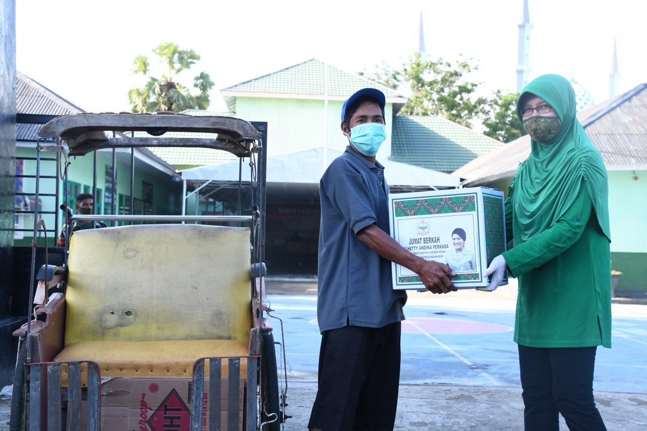 Persit Kartika Chandra Kirana Koorcab Rem 142 PD XIV/Hasanuddin pada bulan suci Ramadan ini berbagi ke sesama berupa sembilan bahan pokok (sembako) kepada warga yang kurang mampu, nelayan, tukang becak, panti asuhan Yayasan Syahid Al-Hidayah Pati'di Mamuju, warakawuri dan lansia, Jumat (8/5/2020).