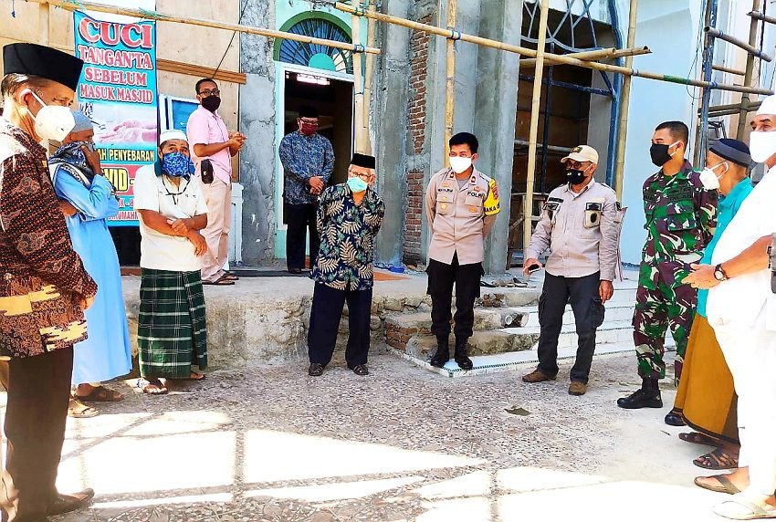 Wakapolres Gowa bersama Tim Gabungan dari stakeholder melakukan tugas Percepatan Penanganan Corona Virus Desease 2019 (Covid-19) Kabupaten Gowa dalam hal ini melaksanakan kegiatan pemantauan dan penyampaian imbauan kepada Pengurus Masjid.
