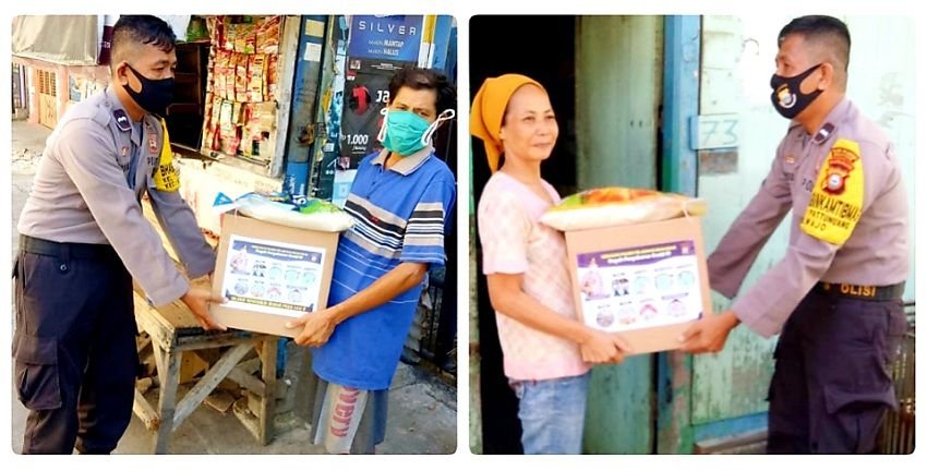 Sebagai wujud nyata kepedulian Polri untuk meringankan beban masyarakat yang terdampak langsung pandemi Covid-19, Bhabinkamtibmas Pattunuang Aipda Adrian mendistribusikan bantuan sembako dari Kapolres Pelabuhan Makassar AKBP Muhammad Kadarislam Kasim kepada warganya, Senin (11/05/2020).