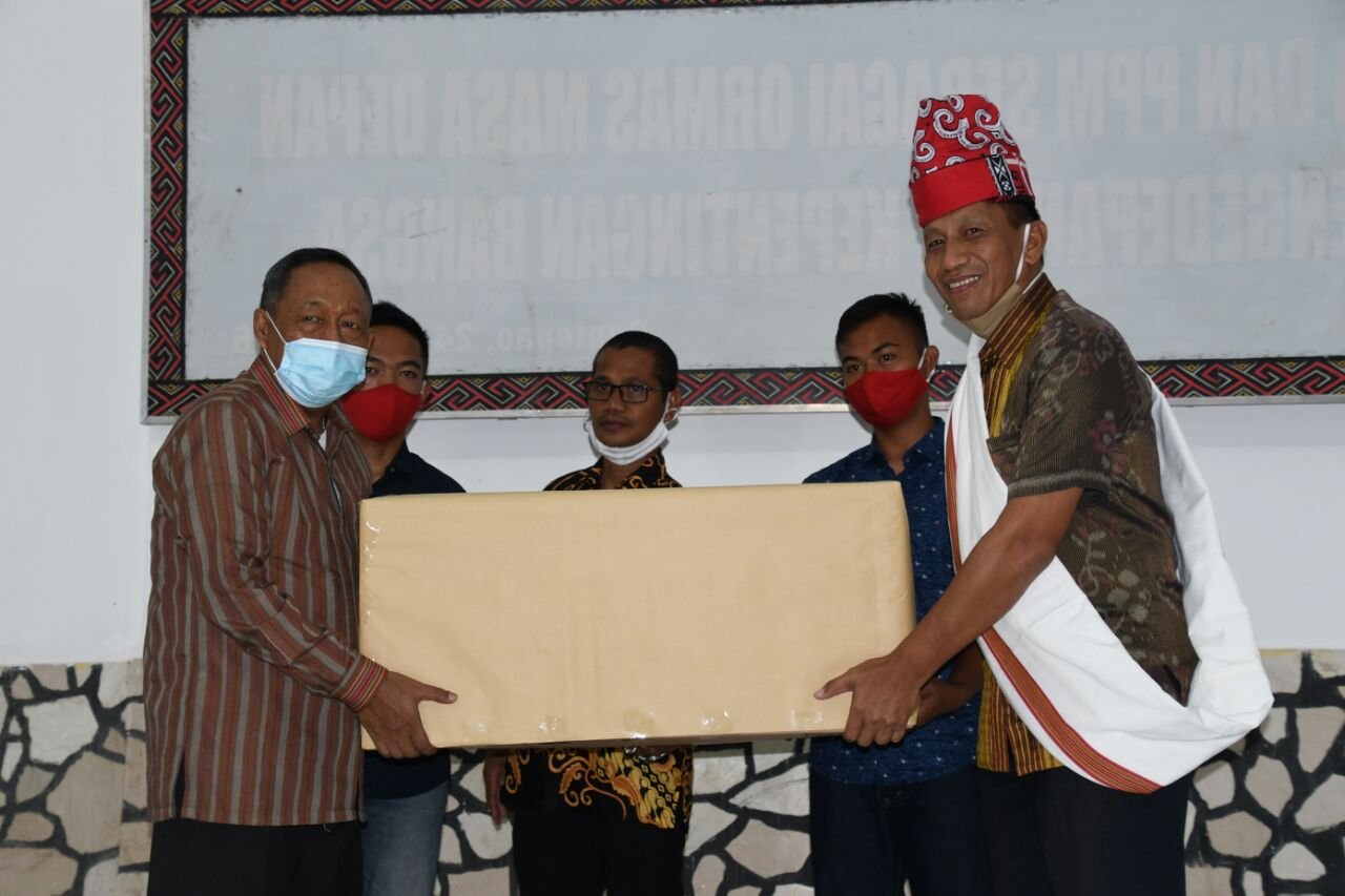 Usài sambutan Bupati dilanjutkan pengalungan sarung kepada Danrem 142 sebagai simbol diterimanya sebagai warga Toraja Utara, sakaligus penyerahan 50 pcs Alat Pelindung Diri (APD) dari Danrem 142/Tatag ke Bupati Torut.