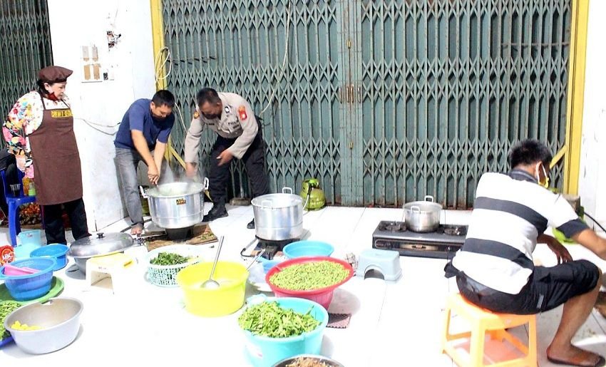 Hampir setiap harinya para petugas Posko Dapur Umum TNI-Polri Peduli Dampak Covid-19 di Kabupaten Gowa ini dipenuhi rutinitas guna mempersiapkan makanan siap saji untuk warga prasejahtera selama masa pandemi dan PSBB di Kabupaten Gowa.
