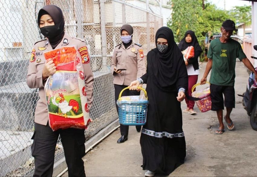 Ketua Bhayangkari Cabang Kepulauan Selayar melaksanakan kegiatan bakti sosial dengan membagikan sembako dengan tujuan bisa membantu meringankan beban kebutuhan sehari-hari masyarakat yang kurang mampu dan terdampak Covid-19.