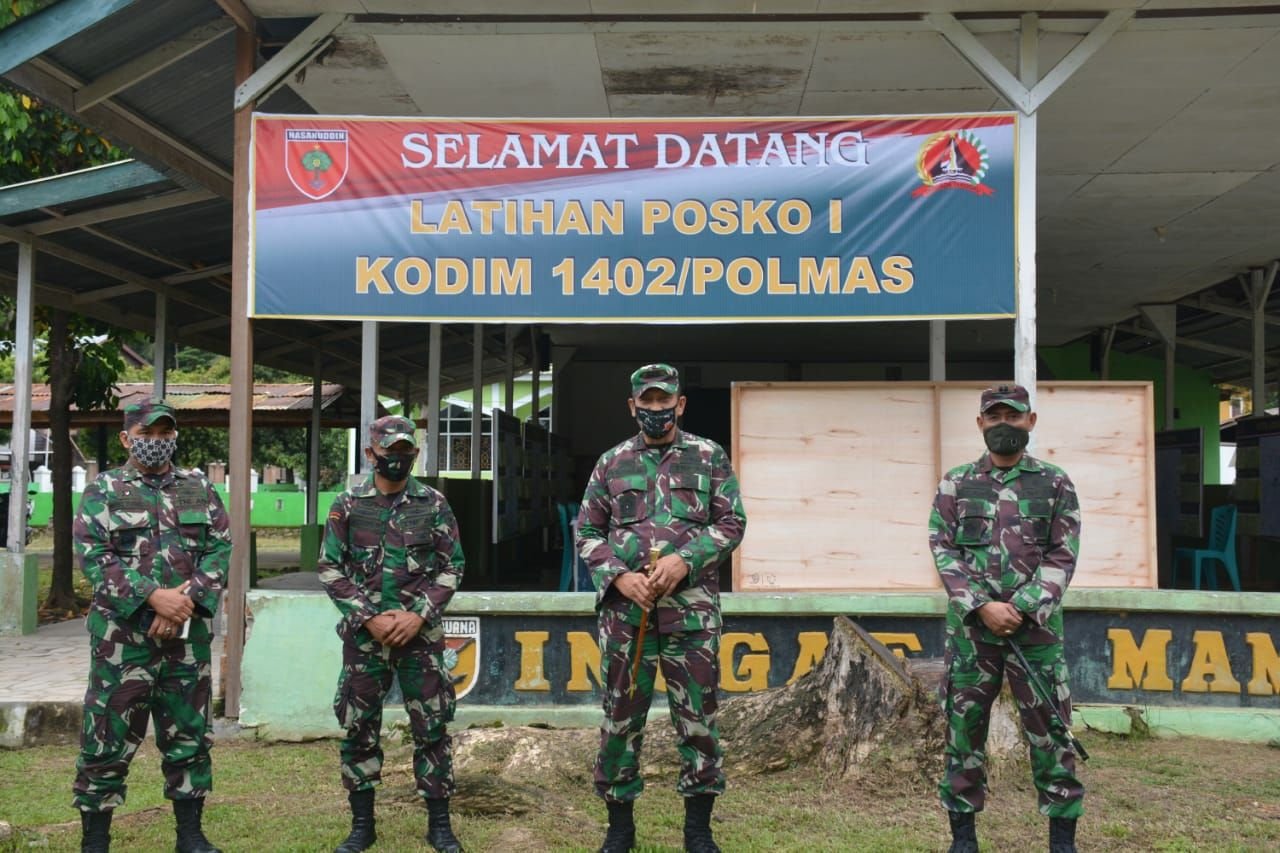 Terkait rencana latihan Posko I Kodim 1402/Polmas yang akan berlangsung pada tanggal 8-10 Juni 2020, Danrem 142/Tatag Kolonel CziFirman Dahlan, S.I.P didampingi Dandim 1402/Polmas Letkol Arh Hari Purnomo dan Kasdim 1402/Polmas Mayor Inf Muh. Yunus meninjau kesiapan pelaksanaan kegiatan tersebut di Makodim 1402/Polmas, Sabtu (6/6/2020).