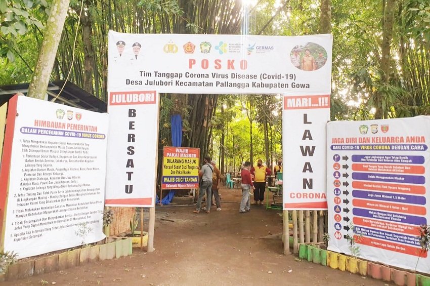 Dalam rangka mendukung program pembangunan Kampung Rewako, personil Polres Gowa menggelar kerja bakti di Dusun Borong Bilalang, Desa Julubori, Kecamatan Pallangga, Kabupaten Gowa, Minggu (07/06/2020) pagi.