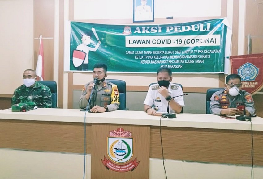 Bertempat di di Aula Kantor Kecamatan Ujung Tanah Makassar, Kapolres Pelabuhan AKBP Muhammad Kadarislam Kasim menyampaikan rasa terima kasihnya kepada Tripika Kecamatan Ujung Tanah yang sudah bersama-sama dengan warga masyarakat melakukan pencegahan penyebaran virus Corona atau Covid-19 ditengah masyarakat.