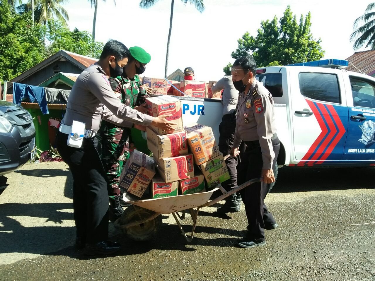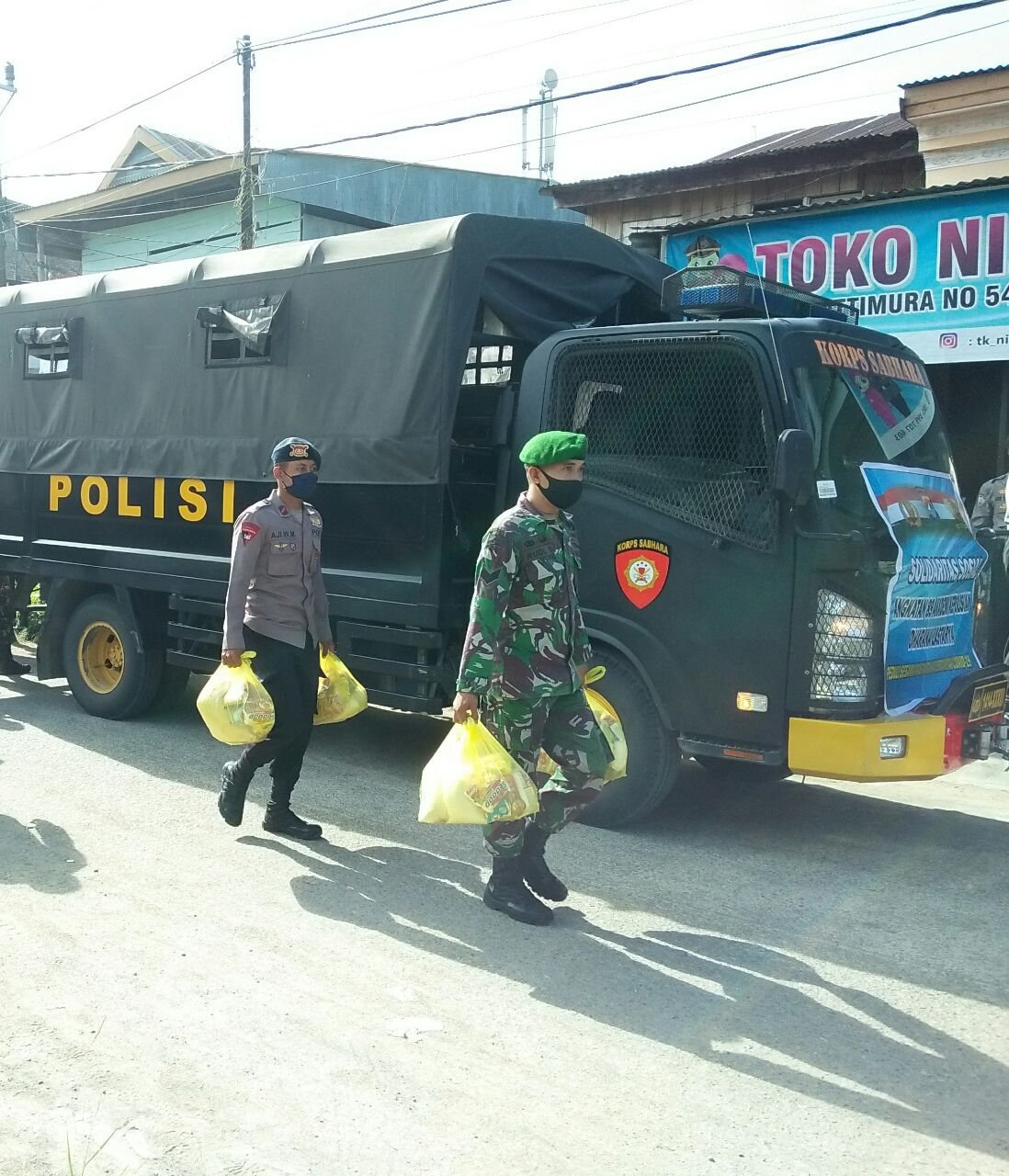 Kegiatan ini dilaksanakan sebagai bentuk sinergitas TNI-Polri yang diwujudkan dalam sikap peduli terhadap masyarakat kurang mampu yang terkena dampak Covid-19.
