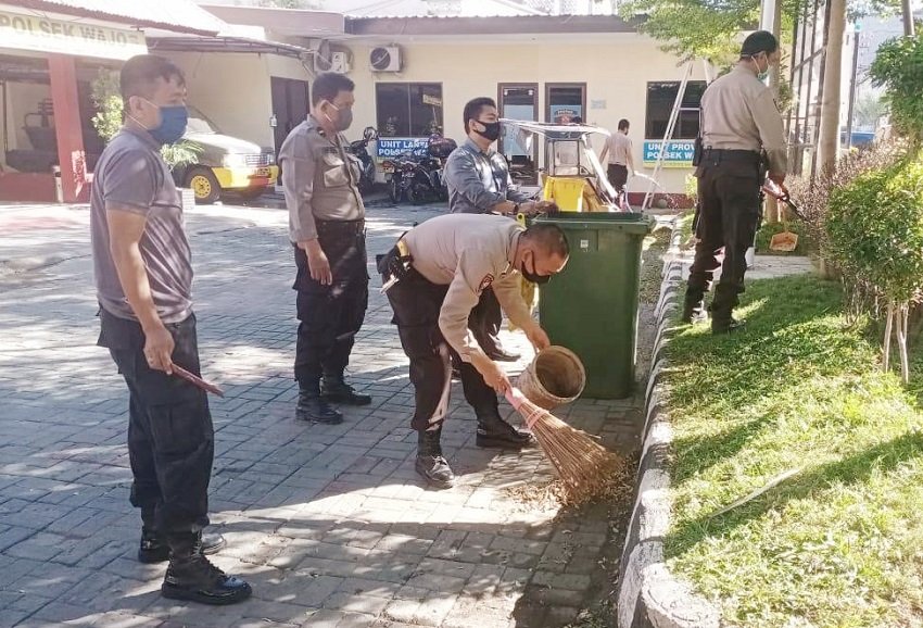 Kapolsek Wajo Kompol Amir Mahmud saat memimpin kerja bakti mengatakan, ini dilakukan dengan sasaran ruangan pelayanan Publik, Aula, dan ruangan-ruangan baik didalam maupun diluar Mapolsek dengan cara membersihkan lingkungan, membersihkan sampah non organik, dan sampah organik yang berpotensi menjadi sumber timbulnya penyakit seperti Demam Berdarah Dengue (DBD) serta mengantisipasi penyebaran virus Corona di lingkungan Mapolsek.