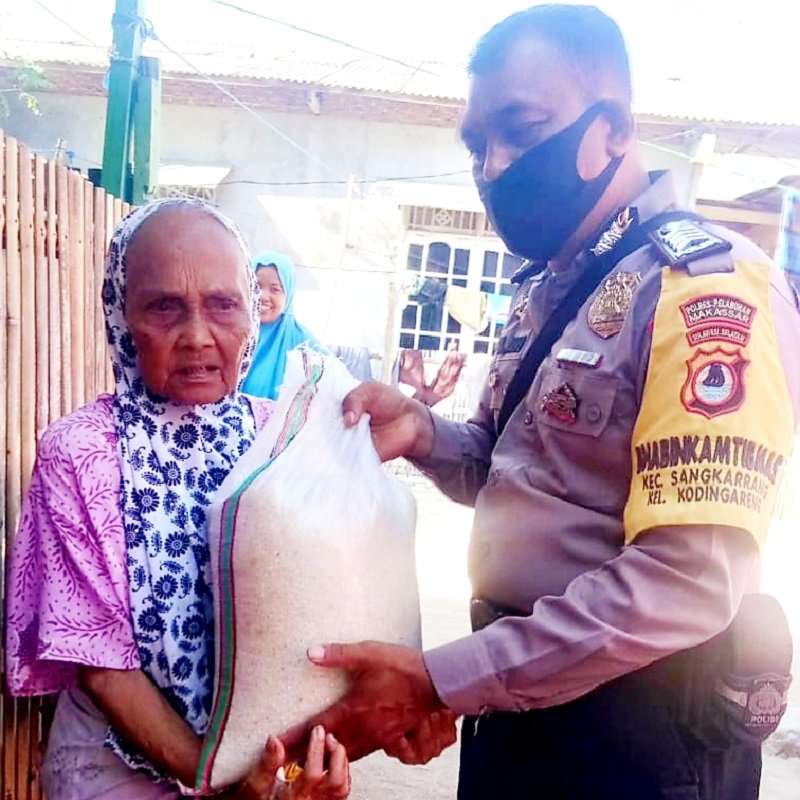 Seperti yang dilakukan Bhabinkamtibmas Pulau Kodingareng Brigadir Jufri menyalurkan beras sembako dari Polres Pelabuhan Makassar kepada warga binaannya yang betul-betul belum mendapatkan bantuan sosial terkait pandemi Covid-19.
