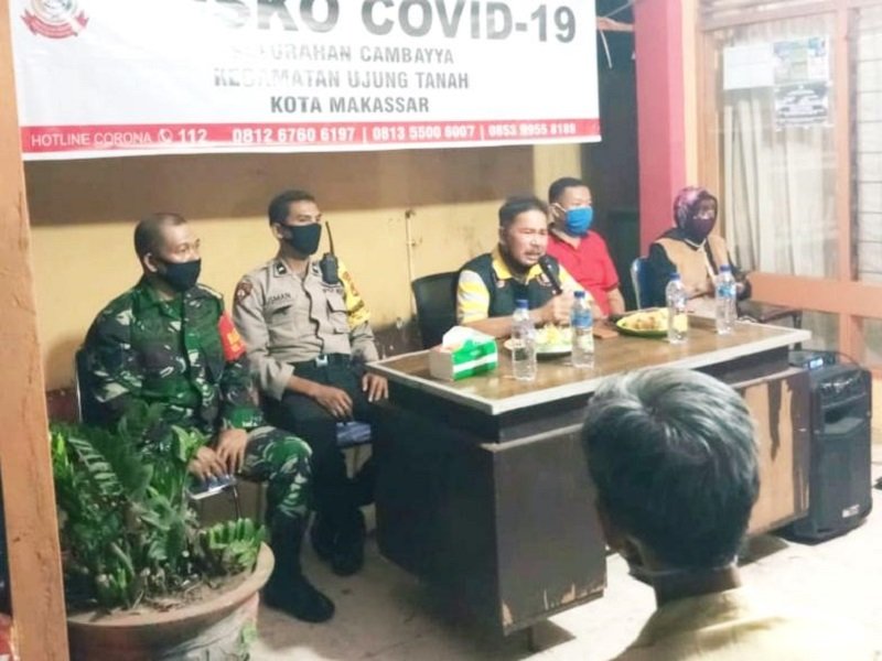 Bermaksud menangkal pemberitaan hoax terkait Covid-19 ini, Bhabinkamtibmas Polres Pelabuhan Makassar bersama tiga pilar Kelurahan Cambayya menggelar rapat koordinasi (rakor) dengan seluruh Ketua RW, Ketua RT dan tokoh masyarakat se-Kelurahan Cambayya.