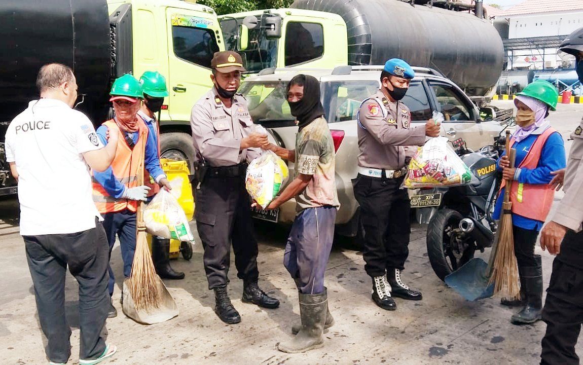 Pembagian berupa bingkisan yang didalamnya berisi beras 2 kg, susu 1 kaleng, gula pasir 1/2 kg, Indomie 4 bungkus, teh Sari Wangi 1 bungkus, minyak goreng 1 liter, dan tepung terigu 1 kg. "Sebanyak 75 paket dibagikan kepada para petugas Cleaning Service, PK5 Pelabuhan serta Buruh Pelabuhan," ungkap AKP Rizkiana.