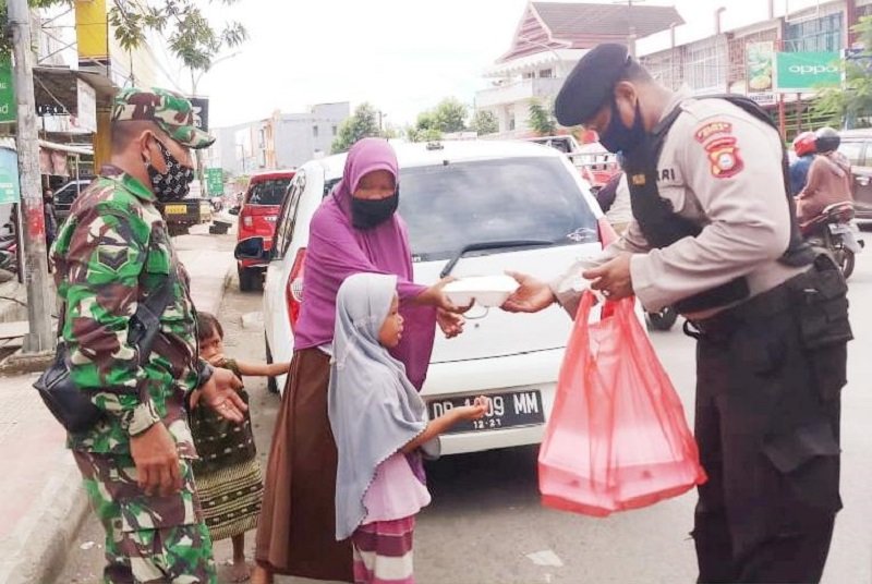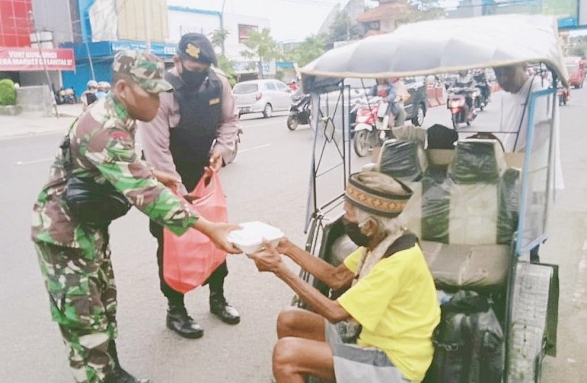 Pada Selasa (16/06/2020) siang, petugas Posko Dapur Umum Gabungan TNI-Polri dari Polres Gowa dan Kodim 1409 Gowa kembali menyasar warga prasejahtera di sepanjang jalan di Kabupaten Gowa.