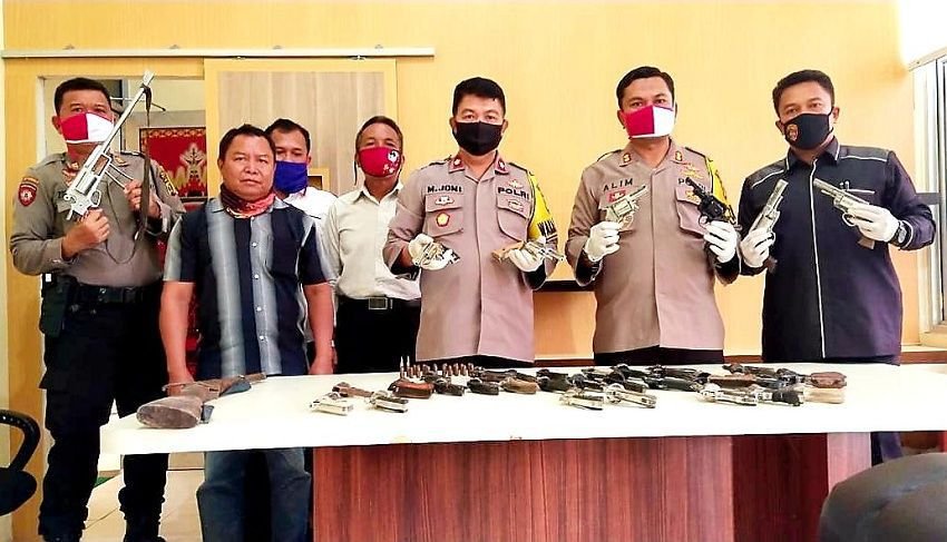 Menjelang Hari Bhayangkara ke-74, warga beramai-ramai menyerahkan senjata api (senpi) rakitan dan amunisi yang sebelumnya mereka kuasai kepada Polres Mesuji pada Selasa (16/06/2020). Penyerahan ini disaksikan langsung oleh Kapolres Mesuji AKBP Alim, SH, SIK didampingi beberapa pejabat utama Polres Mesuji di kantor Polres.