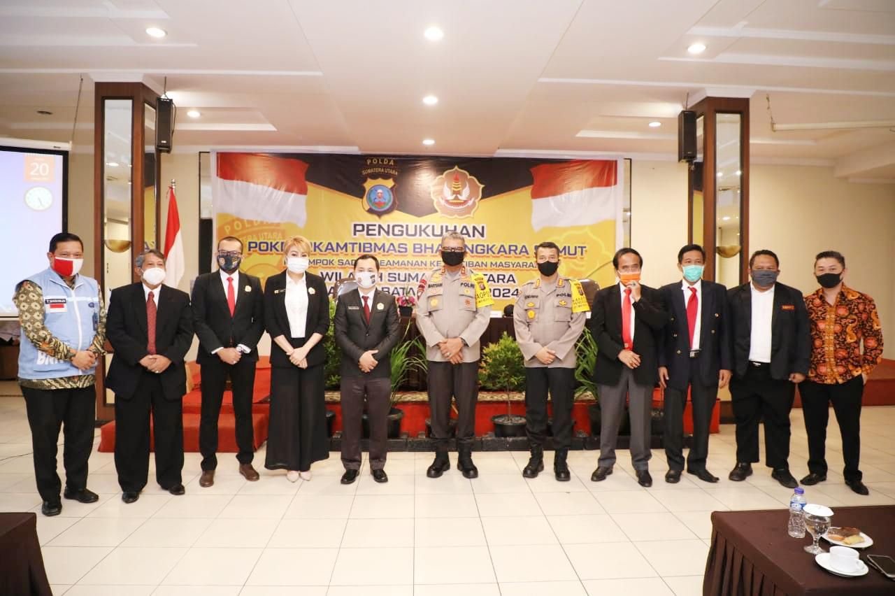 Kepala Kepolisian Daerah Sumatera Utara Irjen Pol. Drs. Martuani Sormin, M.Si didampingi Dir Binmas Polda Sumut dan Kabid Humas Polda Sumut mengukuhkan pengurus Pokdarkamtibmas Bhayangkara (Kelompok Sadar Keamanan Ketertiban Masyarakat) wilayah Sumut, Rabu (17/06/2020).