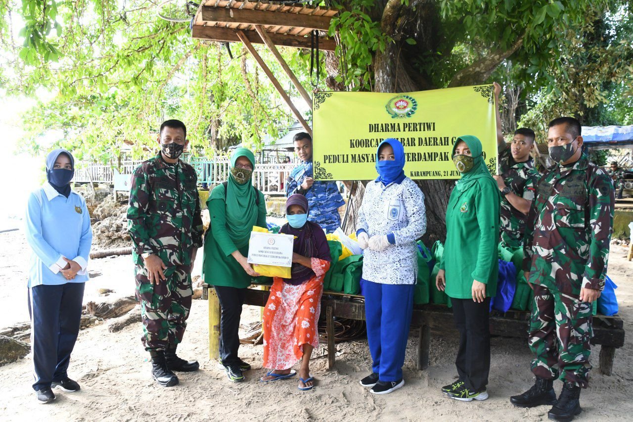 Di tempat yang sama Danrem 142/Tatag Brigjen TNI Firman Dahlan, S.I.P mengatakan, kedatangan rombongan Danrem di pulau Karampuang bersama dengan Persatuan Istri TNI dari tiga angkatan yang tergabung dalam Dharma Pertiwi Koorcab Sulbar Daerah G, yakni Angkatan Darat (Persit), Angkatan Laut ( Jalasenastri ) dan Angkatan Udara (Pia Ardhya Garini) dalam rangka membagi sembako kepada masyarakat di pulau Karampuang.