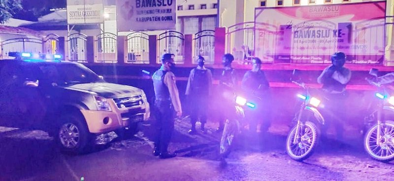 Dalam patrolinya petugas menyambangi Kantor KPU Kabupaten Gowa, Kantor Bawaslu Kabupaten Gowa, dan posko pengamanan di RS Syekh Yusuf.