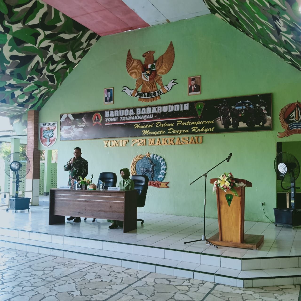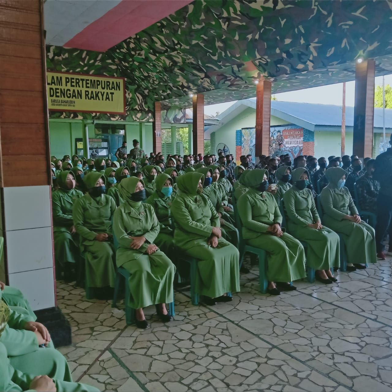 Tatap muka antara Danrem 142/Tatag dengan personel Yonif 721/Makkasau dan ibu-ibu Persit berlangsung di Baruga Baharuddin Yonif 721/Makkasau.