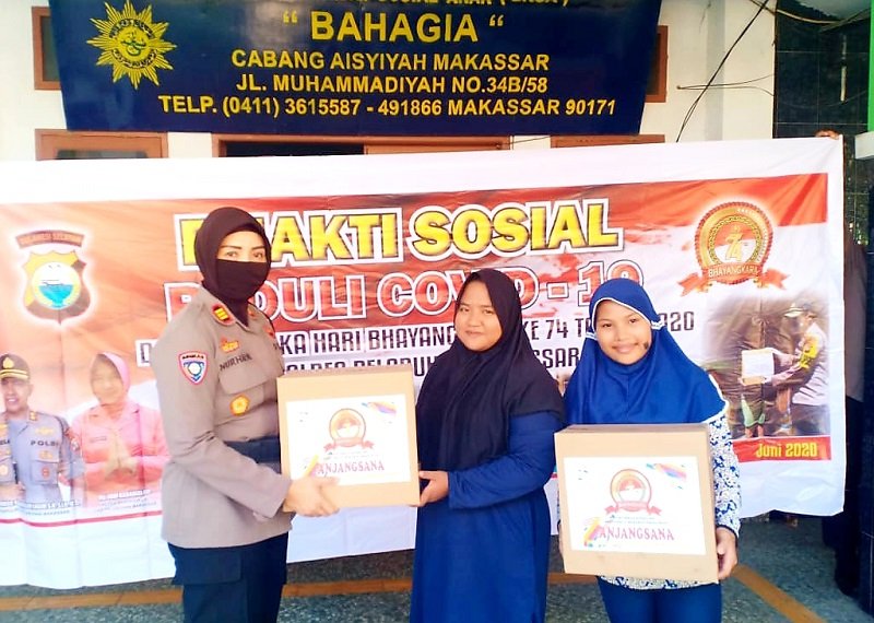 Dalam menyambut Hari Bhayangkara ke-74 tanggal 1 Juli 2020, Satbinmas Polres Pelabuhan Makassar melaksanakan kegiatan bakti sosial dengan membagikan sembako kepada Panti Asuhan Bahagia Jalan Muhammadiyah, Kelurahan Melayu, Rabu (24/06/2020).