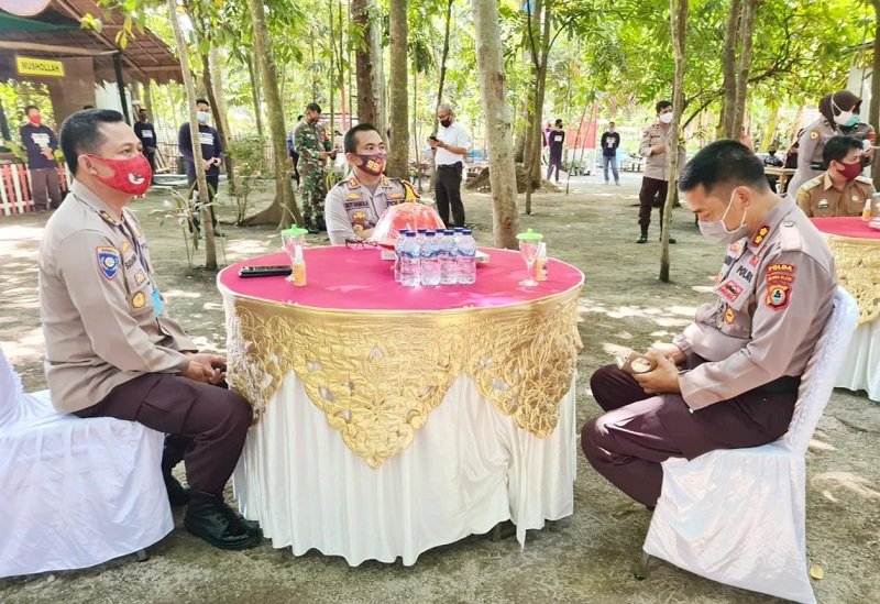 Kapolres Gowa AKBP Boy FS Samola, SIK, MH didampingi PJU Polres Gowa serta Kapolsek Pallangga Iptu Nasruddin, SH, MH, menerima kedatangan tim penilai di Kampung Rewako Desa Julubori, Kecamatan Pallangga, Rabu (24/06/2020).