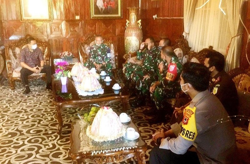 Tiba di Kabupaten Kepulauan Selayar, Danrem 141/Tp beserta jajaran dan Ketua Koorcab Rem 141/Tp PD XIV Hasanuddin melakukan kegiatan kunjungan silaturahmi ke Rumah Jabatan Bupati Kepulauan Selayar, Sabtu (27/06/2020) pagi.