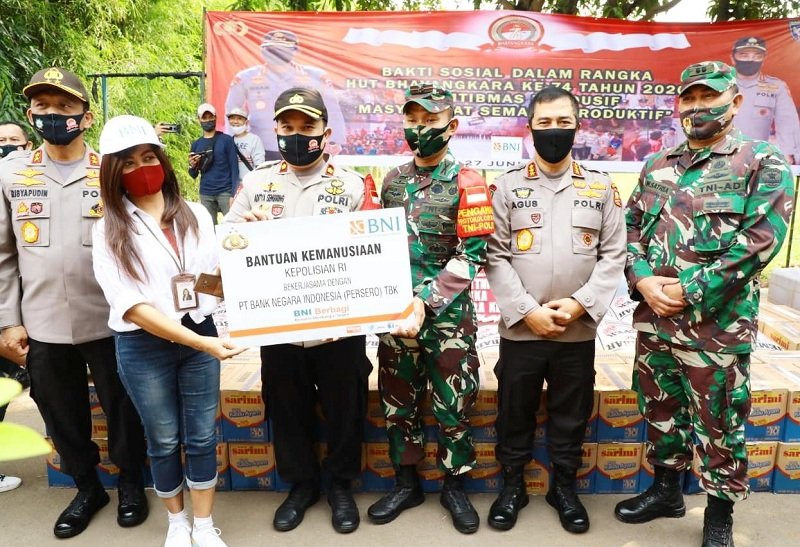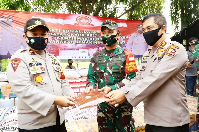 Badan Pemelihara Keamanan (Baharkam) Polri menggelar kegiatan Bakti Sosial dan Bakti Kesehatan dalam rangka memperingati HUT Bhayangkara ke-74 di wilayah hukum Polres Tangerang Kota, Banten, Sabtu, 27 Juni 2020.