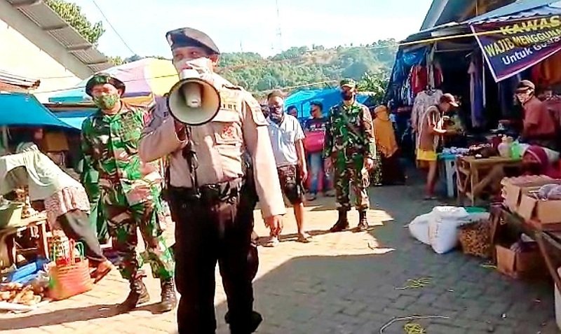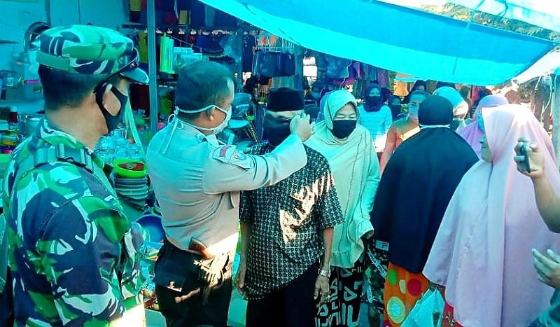 Kapolsek Bontomarannu Polres Gowa Iptu H. Yuniarso mengerahkan personilnya untuk intensifkan pelaksanaan patroli dialogis dengan menemui pedagang pasar sekaligus berikan imbauan Kamtibmas, Minggu (28/06/2020) pagi.