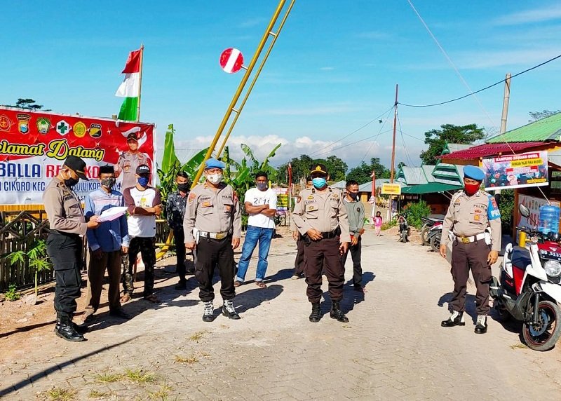 Kapolsek Tompobulu Polres Gowa Iptu Hendra Mangera, SH yang didampingi oleh Danramil 1409-07 Kapten Infanteri Baharuddin, Camat Tompobulu H. Harifuddin, SE menerima Tim Penilai Kampung Rewako di Kampung Lambiria, Kelurahan Cikoro, Kecamatan Tompobulu, Kabupaten Gowa, Minggu (28/06/20) pagi.