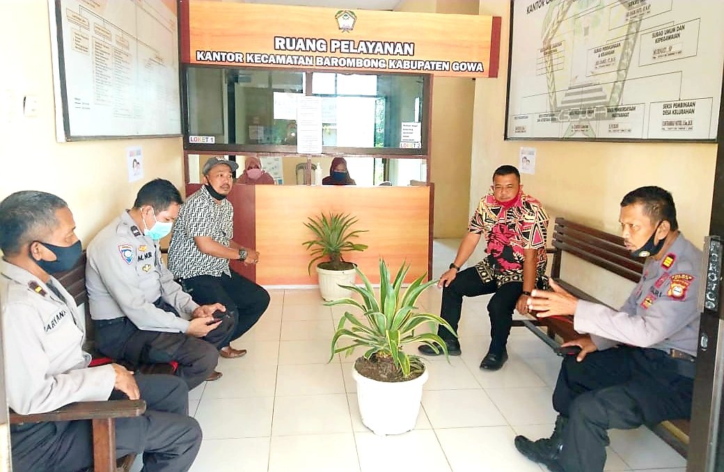 Rapat koordinasi kali ini dihadiri Camat Barombong Anwar Asru, S.Sos, Kapolsek Barombong didampingi Kanit Bimmas Ipda Haryana serta Kapuskesmas Kanjilo Barombong untuk membahas rencana sosialisasi Wajib pakai Masker di Kabupaten Gowa kepada warga untuk menekan serta mencegah penyebaran virus Corona atau Covid-19.