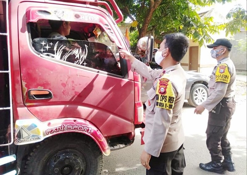 Wakapolres Gowa Kompol Muh Fajri turun ke jalan bersama personil Polres Gowa lainnya untuk mengimbau masyarakat khususnya pengguna jalan di jalan poros Desa Julubori, Kecamatan Pallangga, Kabupaten Gowa, Selasa (30/06/2020).