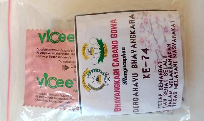 Dalam rangka Hari Bhayangkara ke-74, Bhayangkari Cabang Gowa melalui Kapolsek Bontomarannu Polres Gowa memdistribusikan nutrisi atau vitamin.