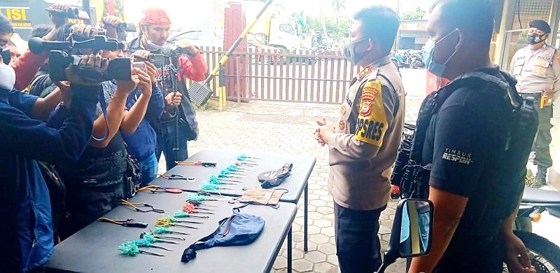 "Ditemukan 24 busur dan lima ketapel yang disimpan dalam tas dan disembunyikan dalam laci lemari bekas serta mobil rusak. Tidak jauh dari tempat berkumpul para remaja di sana," jelas Paur Humas Ipda Burhanuddin Karim, Senin (06/07/2020).