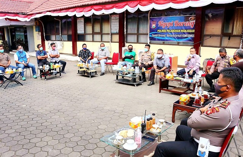 Guna menyampaikan pesan-pesan Kamtibmas, Polres Pelabuhan Makassar menggelar kegiatan ngopi bareng bersama Anggota DPRD Makassar, Tim Dokter dan Relawan Covid-19 serta pasien yang pernah dirawat dan sudah sembuh dari virus Corona.
