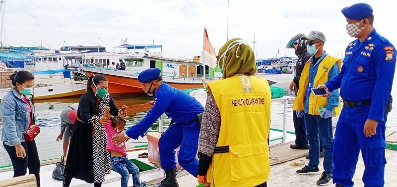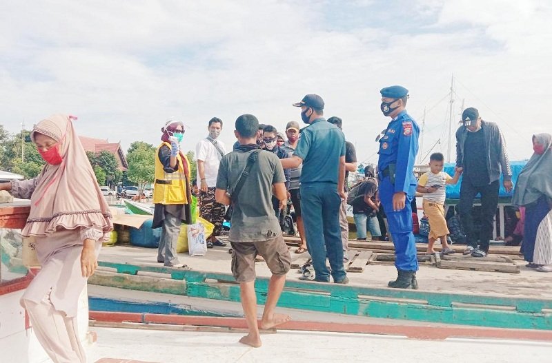 Satpolair Polres Pelabuhan Makassar memberikan sosialisasi dan edukasi ke masyarakat terkait penerapan new normal atau tatanan hidup baru di tengah pandemi virus Corona atau Covid-19, Selasa (07/07/2020) di Pelabuhan Paotere.