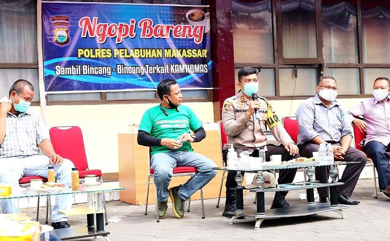 Kapolres Pelabuhan Makassar AKBP Muhammad Kadarislam Kasim menggelar acara Ngopi Bareng yang dihadiri Anggota DPRD Kota Makassar M. Yunus, Dokter RS Akademis Jaury Jusuf Makassar dr Febry, Dewan Pembina Gerak Bersama Indonesia Andi Yuslim Patawari, dan para PJU Polres Pelabuhan Makassar.