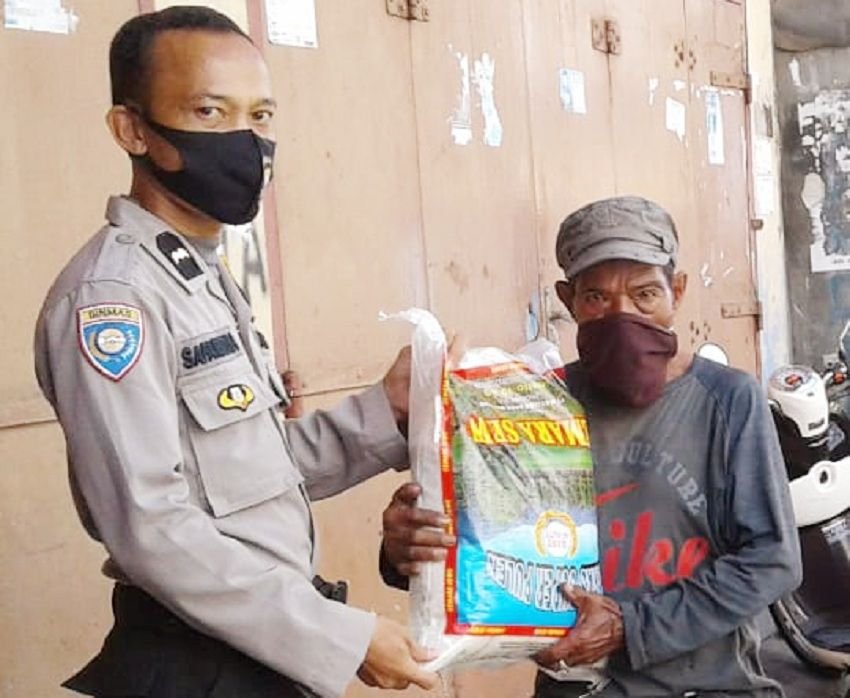 Bantuan beras ini berasal dari Kapolres Pelabuhan Makassar kepada warga kurang mampu guna meringankan beban hidup selama masa pandemi Covid-19.