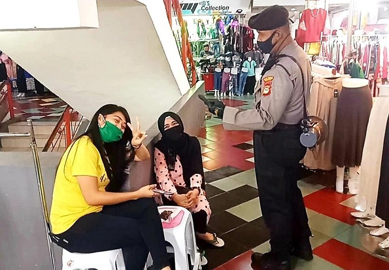 Dalam pelaksanaan Operasi Aman Nusa II, Polres Pelabuhan Makassar gencar mengawasi serta memberikan edukasi protokol kesehatan kepada konsumen maupun pengelola sejumlah pusat perbelanjaan di tengah pandemi Covid-19.