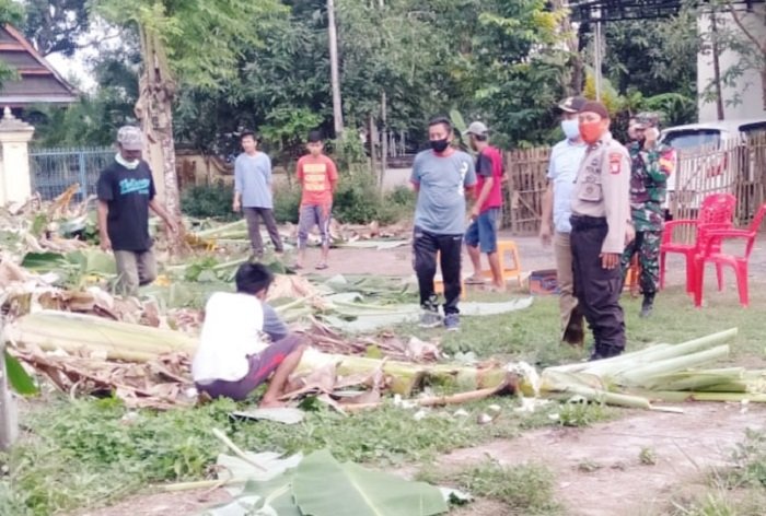 Bhabinkamtibmas Kelurahan Tamallayang Polsek Bontonompo Polres Gowa Aipda Hamzah gotong royong bersama warga melakukan kerja bakti membersihkan lokasi Kampung Rewako, Sabtu (11/07/2020).