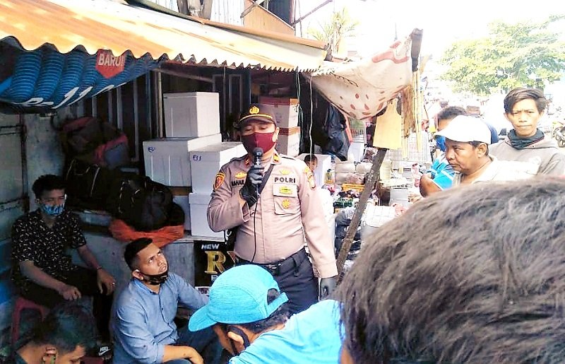 Salah satu cara untuk memutus mata rantai penyebaran virus Corona atau Covid-19, Polres Pelabuhan Makassar memberikan imbauan kepada warga masyarakat di Tempat Pelelangan Ikan (TPI) Paotere Jalan Sabutung, Kelurahan Gusung, Kecamatan Ujung Tanah, Kota Makassar, Jumat (11/07/2020).